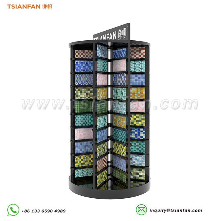 Description: Our collection features an array of mosaic display racks, encompassing rotating tile stands, versatile mosaic presentation shelves, wall-mounted mosaic showcases, and custom-designed mosaic display units, catering to diverse tile sizes and patterns for an immersive visual experience.