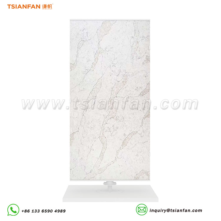 Description: Featuring a heavy-duty 360° swivel design, this space-saving display is engineered for large format porcelain, marble, and quartz samples.